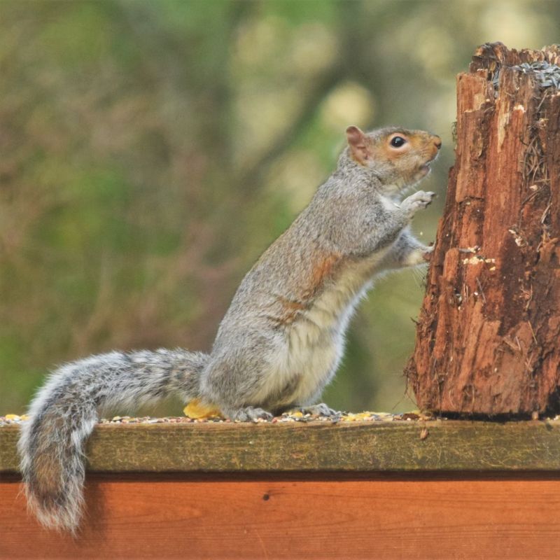 The eastern gray squirrel has a grayish body with some black, white, or brown fur and a whitish belly. - History By Mail