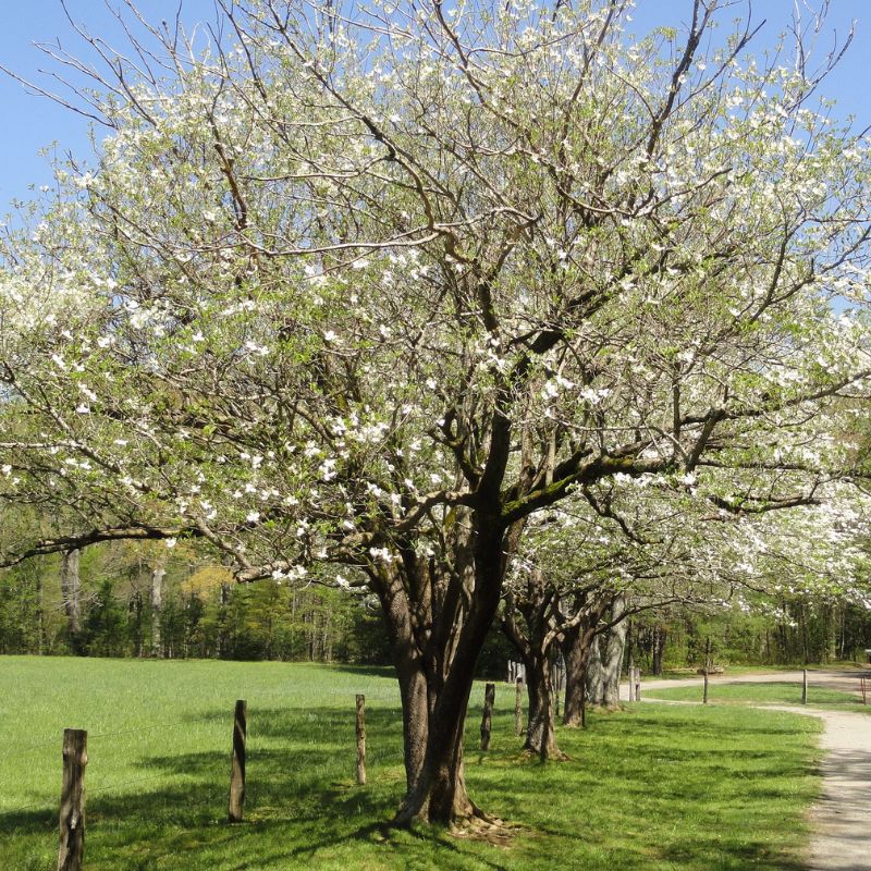 Dogwood trees are easy to recognize due to their characteristic bark, smooth oval leaves, and white flower clusters. - History By Mail
